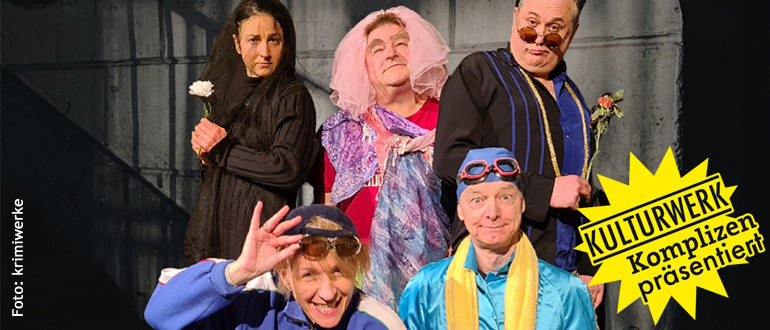 300. Vorstellung der krimiwerke als Benefiz: improvisierte Krimi-Kult-Comedy für einen guten ZweckOhne Sie haben wir kein Opfer, keine:n Mörder:in und keinen Kriminalfall...